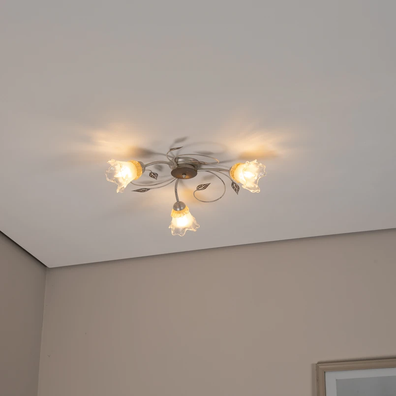 Stropní svítidlo Lancia: florentská elegance se snoubí s evropskou výrobou Stropní svítidlo Lancia spojuje florentskou eleganci s vysoce kvalitním zpracováním z tepaného železa a skla. Design v barvě slonové kosti propůjčí každé místnosti nadčasový vzhled a harmonicky se začlení do různých stylů vybavení. Lampa se třemi světly poskytuje rovnoměrné a příjemné osvětlení a vytváří příjemnou atmosféru v obývacím pokoji i v předsíni. Stropní lampa Lancia, vyrobená v Evropě a označená Made in Italy, je symbolem kvality a tradice.