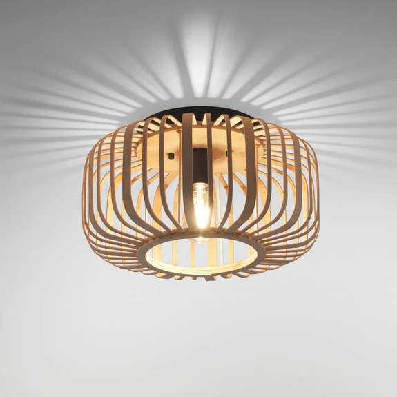 Stropní svítidlo Racoon ze dřeva, silné vzpěry, Ø 42 cm