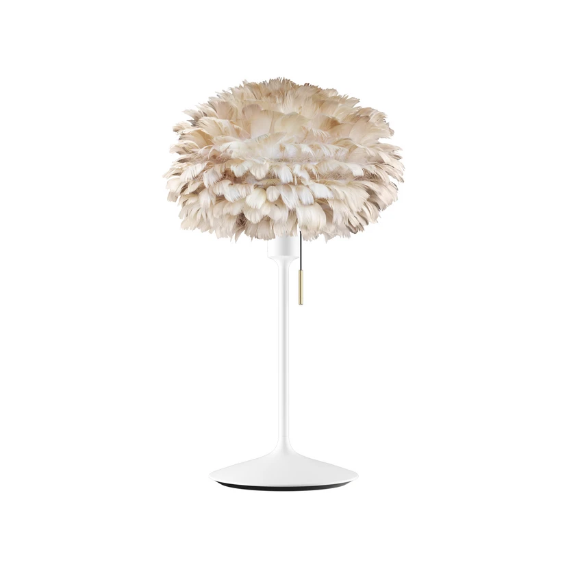 Stolní lampa Eos mini nabízí nesrovnatelný pohled díky stínidlu z přírodního materiálu. Skládá se z husího peří, které bylo ručně naneseno na podklad z kartonu. Při výrobě stínidel se nepoužívá peří živých zvířat. Deštník Eos mini navrhl Søren Ravn Christensen, spoluzakladatel dánského výrobce UMAGE, a lze jej kombinovat s různými rámy, v tomto případě byl použit rám navržený Andersem Klemem. Její tvar byl nezaměnitelně vymodelován podle nožky flétny na šampaňské. Vyzařuje lehkost a čistou eleganci a v kombinaci se stínidlem Eos mini vytváří stolní lampu, která dodá každému modernímu designu domácnosti něco navíc.