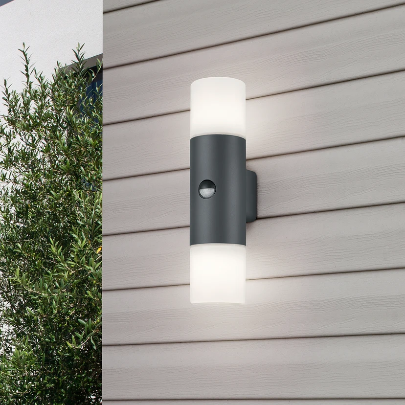 Moderní venkovní nástěnné světlo Hoosic vyrobené z antracitového hliníkového odlitku a bílého plastu nabízí díky integrovanému senzoru tvarově nadčasový vzhled a vysokou funkčnost. Světlo je emitováno dvěma žárovkami nahoru a dolů, a tím dosahuje dobrého osvětlení fasád a okolí domu. K dispozici je také praktický detektor pohybu, který s detekčním úhlem 120 ° a rozsahem až 8 m rozsvítí světlo vždy, kdy je potřeba. Délku světla lze snadno nastavit od deseti sekund do sedmi minut.
