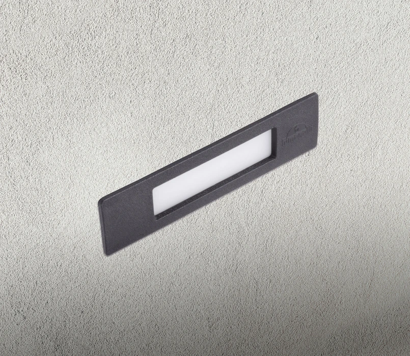 Obdélníkové vestavné nástěnné svítidlo Nina s opálovým difuzorem a nastavitelnou barvou světla Vestavné nástěnné svítidlo Nina pro venkovní použití vytváří užitečné a příjemné orientační osvětlení ve vstupních prostorách, podél schodů a na chodnících v blízkosti fasády. Černý obdélníkový kryt z robustní syntetické pryskyřice je vybaven světelným vývodem z opálového plastu PMMA, přes který je světlo homogenně rozptýleno. Dodávaný světelný zdroj R7s LED je vybaven posuvníkem, který umožňuje volbu teplého bílého, univerzálního bílého nebo denního bílého světla - Stupeň krytí: IP55 - Vhodné pro použití v blízkosti moře, odolné proti UV záření a korozi