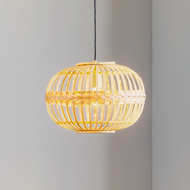 Závěsné světlo Amsfield s bambusovým stínidlem ve tvaru oválu