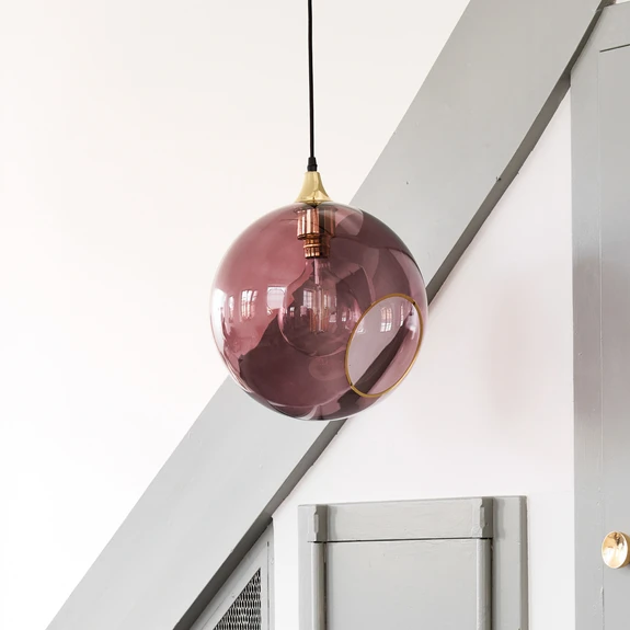 Závěsné svítidlo Ballroom XL z ručně foukaného, ručně malovaného skla Závěsné svítidlo Ballroom XL má jednoduchý tvar, ale je fantasticky krásné. Klasický tvar v kombinaci s pozlaceným nebo černým závěsem činí toto designové světlo nadčasovým. Skleněná kopule je foukaná a ručně malovaná. Okraj fazetového výklenku je v závislosti na verzi ve zlaté nebo stříbrné barvě. Uvnitř stínidla se nachází patice pro libovolně volitelnou žárovku E27 (není součástí dodávky, viz příslušenství). Pro bílou verzi se doporučuje také matný bílý světelný zdroj, zatímco pro všechny ostatní barevné varianty je třeba zvolit světelný zdroj s viditelným vláknem, protože světelný zdroj je vidět přes skleněné stínidlo. Nezáleží na tom, jakou barvu si vyberete: Poznámka: Každé svítidlo z ručně foukaného skla je jedinečné. Ve skle mohou být inkluze (bublinky) o velikosti až 0,5 cm.