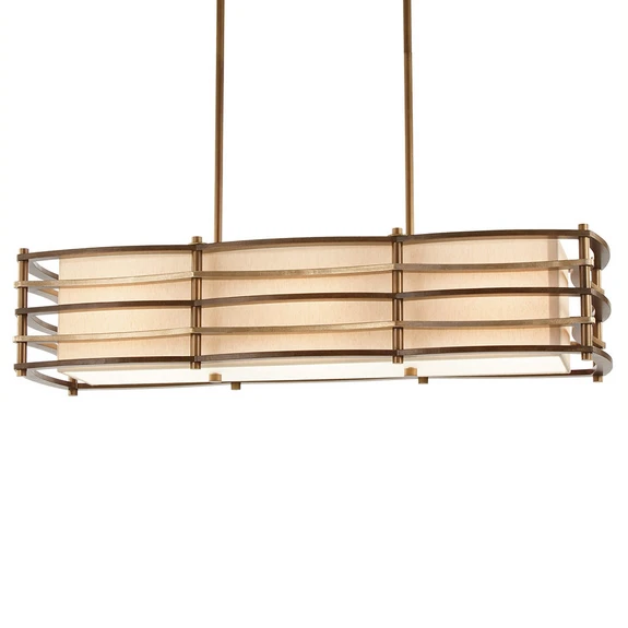 Podlouhlá závěsná lampa Moxie se představuje zářivě krásná a s teplým, lesklým bronzovým povrchem, který je ideální jako zdroj světla nad jídelním stolem nebo nad kuchyňskou linkou. Zvláštností obrazovky s kovovou klecí je povaha jednotlivých kovových prvků. Vodorovné vzpěry jsou střídavě ohnuty dovnitř a ven a vytvářejí působivý efekt jin a jang. Použité světelné zdroje jsou zakryty difuzorem z bílého leptaného skla, který je umístěn ve spodní části obrazovky, takže světlo je vyzařováno zcela bez oslnění. Difuzor je obklopen plátěným odstínem, který díky jemné struktuře dodává světlu velmi útulný nádech.