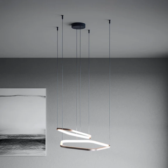 Závěsné světlo Estrella od Stars of Light spojuje moderní design s funkční všestranností. Světlo je vyrobeno z vysoce kvalitního hliníku a plastu a díky elegantní barevné kombinaci bronzu a černé barvy se dokonale hodí do moderních obývacích pokojů a jídelen. Integrovaný LED světelný zdroj zajišťuje energeticky úsporné osvětlení, které lze díky funkci CCT flexibilně přizpůsobit. Od teplé bílé barvy světla s teplotou 2 200 K až po jas podobný dennímu světlu s teplotou 6 500 K nabízí lampa širokou škálu barev světla, které jsou vhodné pro každou náladu a každou příležitost.