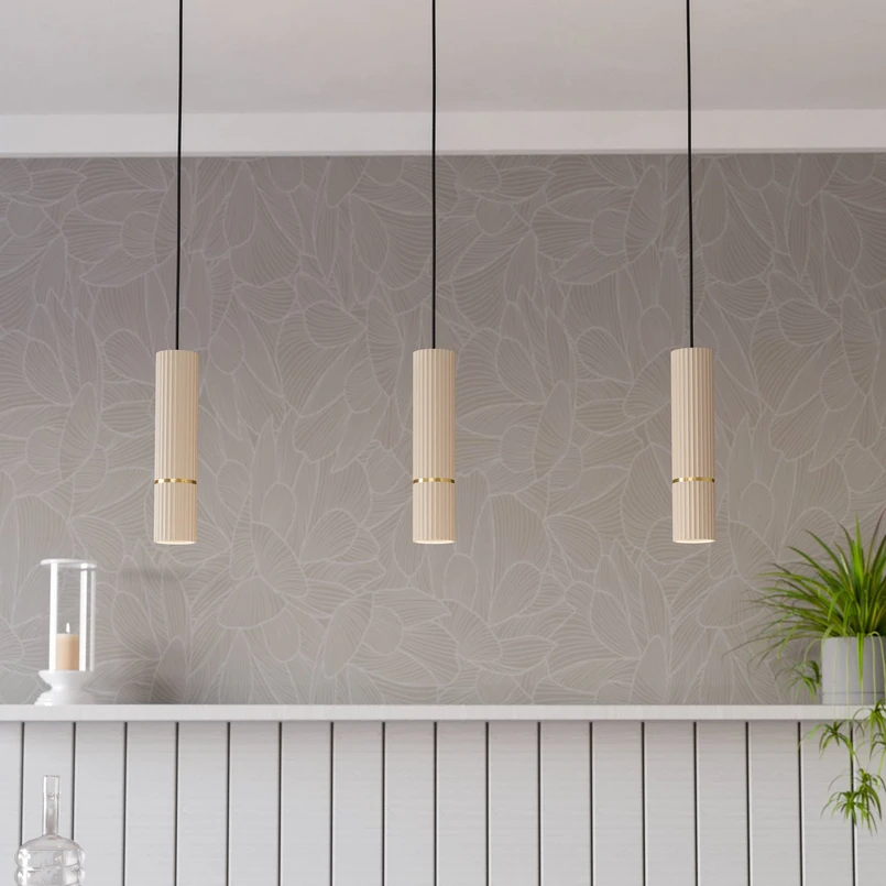 Závěsné svítidlo Caminia v pískové barvě s detaily z broušené mosazi Závěsné svítidlo Caminia je ozdobou každého interiéru. Povrch v pískové barvě dodává tomuto svítidlu teplý a příjemný vzhled, který harmonicky zapadá do obývacího pokoje, jídelny nebo kuchyně. Závěsné svítidlo Caminia se třemi světly poskytuje vyvážené osvětlení, které udává ten správný tón pro chvíle odpočinku i dynamiky. Závěsné svítidlo Caminia svým decentním designem a jemným barevným laděním vytváří atmosféru, která vybízí k posezení. Včetně dodatečného světelného zdroje GU10: 3 x 4,7 W LED, 3 000 K, 345 lumenů.